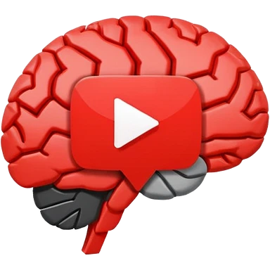 3D icon design, brain with YouTube play button symbol integrated into brain structure, glassmorphism style, soft shadows, gradient colors, modern app icon aesthetic, isometric viewemoji