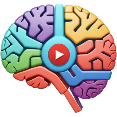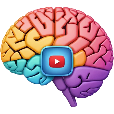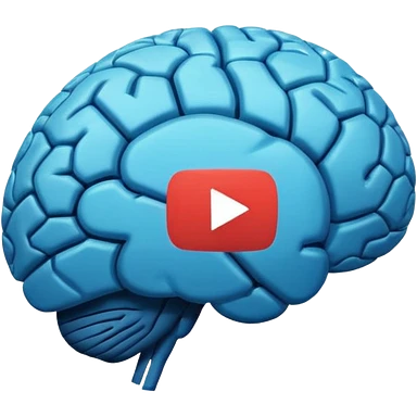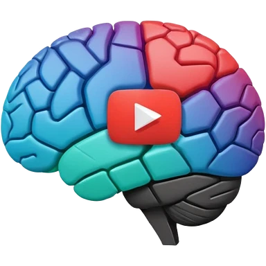 3D icon design, brain with YouTube play button symbol integrated into brain structure, glassmorphism style, soft shadows, gradient colors, modern app icon aesthetic, isometric view emoji | AI Emoji Generator