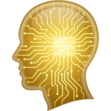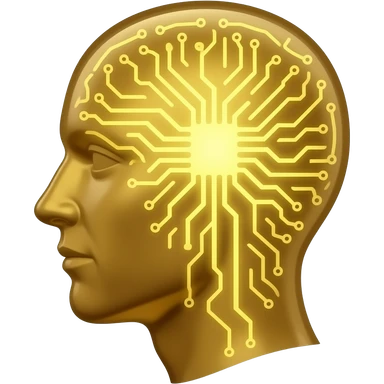 glowing gold human head silhouette with a transparent effect,-filled-with-interconnected-circuit-lines-and-neural-nodes,-symbolizing-artificial-intelligence emoji