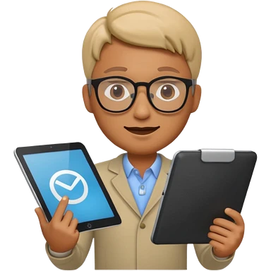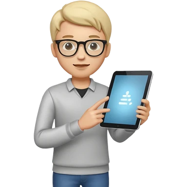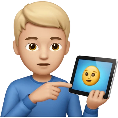 3D imoji of The little boy who is a magic designer, he is a graphic designer, he should not be holding anything hand down emoji