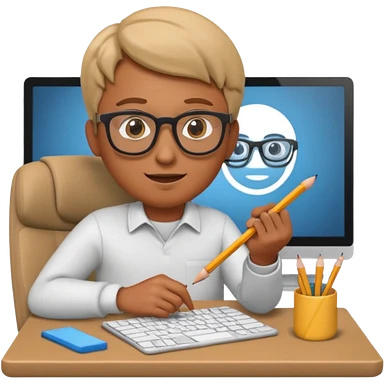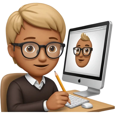 3D imoji of The little boy who is a magic designer, he is a graphic designer, he should not be holding anything emoji