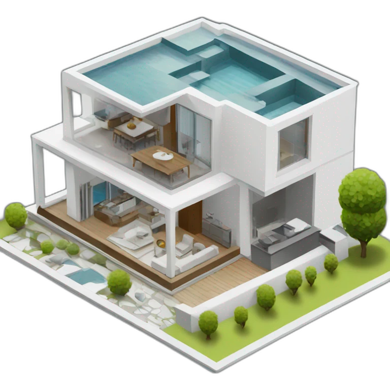very simple, simple style, 3d isometric modern luxury home with pool emoji