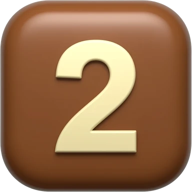 3D icon of rounded cocoa brown block with a creamy beige rounded number 2 centered on it. emoji