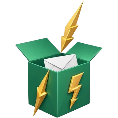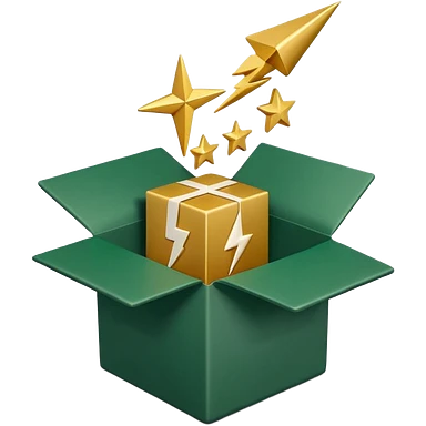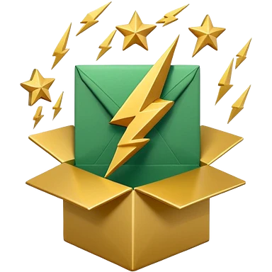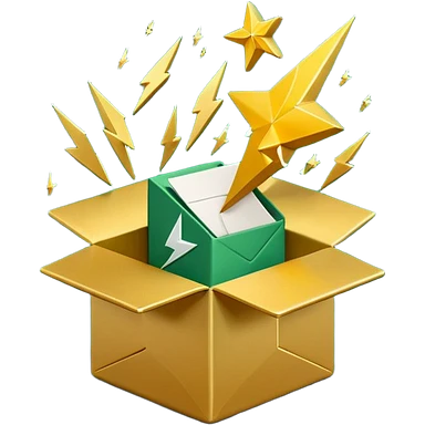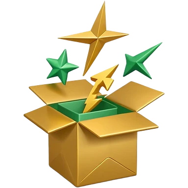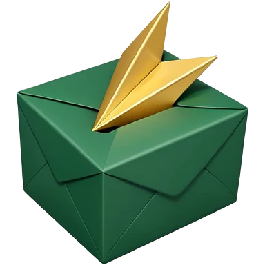 3D minimal open box with papers and documents floating out, matte finish, deep green (#0B3D2C) box, cream (#F5F5DC) papers, gold (#C9B037) subtle glow, Apple style, clean and premium, soft shadow, transparent background emoji | AI Emoji Generator