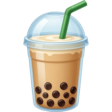 Cinematic pastel-colored bubble tea, chubby cup with a smiling face, tiny black tapioca pearls peeking out, soft glowing background, playful and adorable. emoji