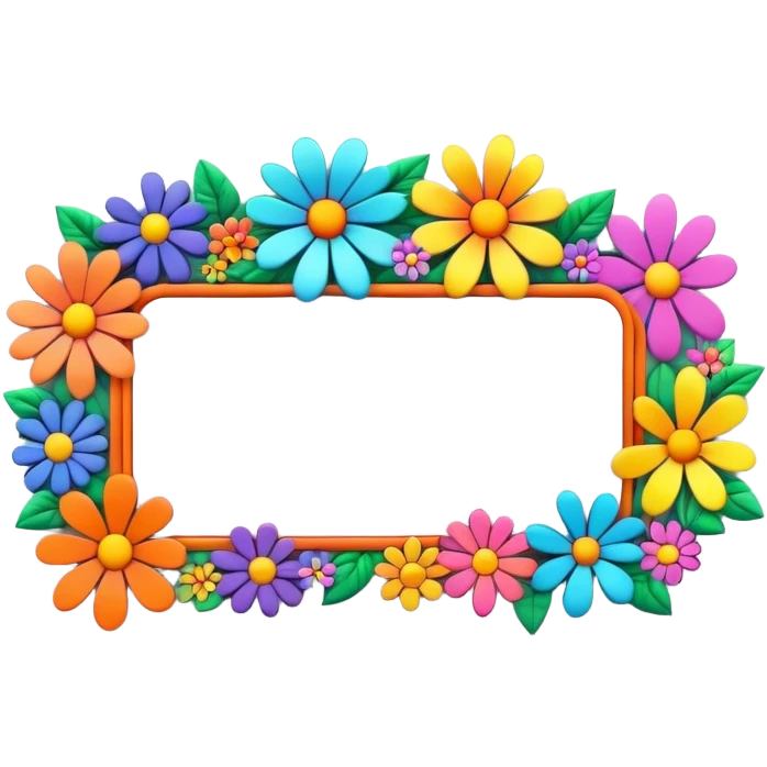 3D, psychedelic colored name tag with hippie style flower border emoji | AI Emoji Generator