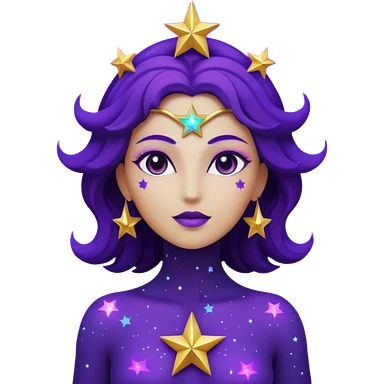 3D render of Star Goddess made of deep space cosmic energy, Silhouette filled with galaxies, glowing purple edges, silhouette shape with no facial features, Apple emoji style, isolated on white background --v 6.0 emoji