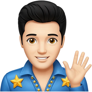 3D render of Elvis Microphone, vintage 1980s audio equipment aesthetic, tactile analog buttons, shiny silver metal grille with a blue handle, mixed wood grain and brushed aluminum textures, Apple emoji style, isolated on white background --v 6.0emoji