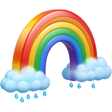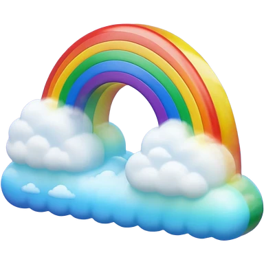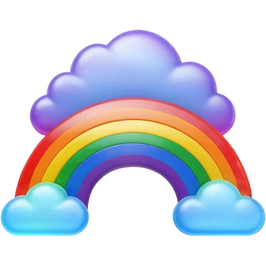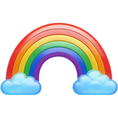 3D render of Rainbow, miniature weather phenomenon, volumetric particle effects, translucent arc with Red, Orange, Yellow, Green, Blue, Violet, elemental energy, emoji style, isolated on white background --v 6.0. emoji