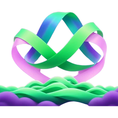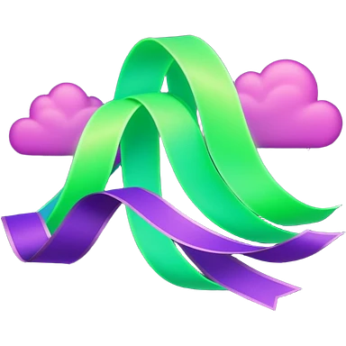 3D render of Aurora, miniature weather phenomenon, volumetric particle effects, wavy glowing neon green and purple ribbons in the sky, elemental energy, emoji style, isolated on white background --v 6.0. emoji