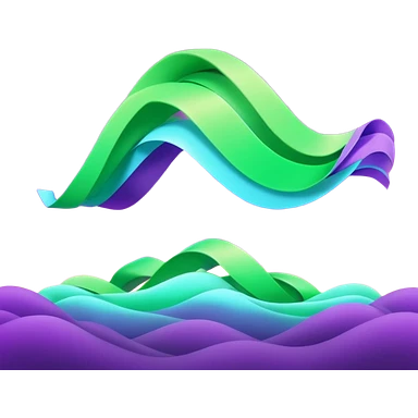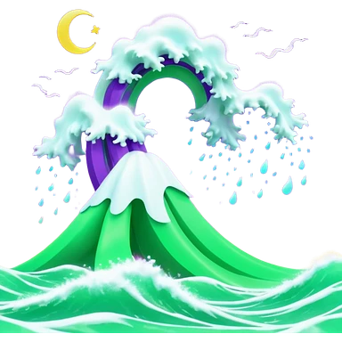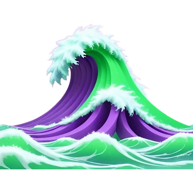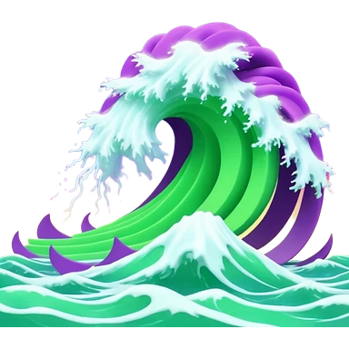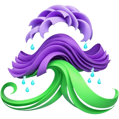 3D render of Tsunami, miniature weather phenomenon, volumetric particle effects, wavy glowing neon green and purple ribbons in the sky, elemental energy, emoji style, isolated on white background --v 6.0. emoji