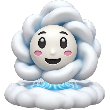 3D render of Fog, miniature weather phenomenon, volumetric particle effects,dense blue-grey cloud bank obscuring the ground, elemental energy, emoji style, isolated on white background --v 6.0. emoji