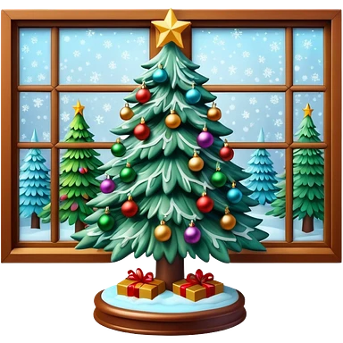 3D rendering realistic still life ultra detailed, christmas tree lit up by a frosty window emoji