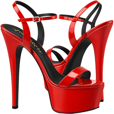 3D rendering, side view, Fabulicious brand, red patent shiny vegan leather seductive style platform heel sandals emoji