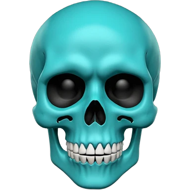 Generate a gothic style emoji of a skull face, in teal turquoise scheme. 3D render emoji