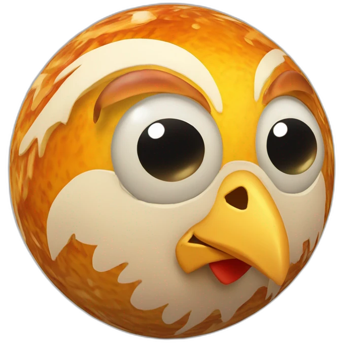 3d sphere Jupiter with a cartoon chicken skin texture with big beautiful eyes emoji | AI Emoji Generator