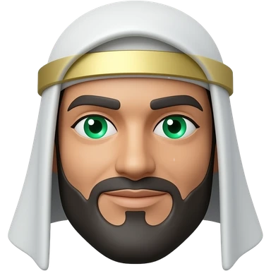 3D isometric face icon, elder Arabic features, kind beard. Minimalist professional style, emerald green & gold accents. Soft studio lighting, 8k Octane render, ray-tracing detail. Isolated on white background, premium literary aesthetic --v 6.0 emoji
