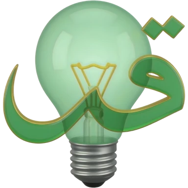 3D isometric lightbulb icon, filament shaped like Arabic letter. Minimalist professional style, emerald green & gold accents. Soft studio lighting, 8k Octane render, ray-tracing detail. Isolated on white background, premium literary aesthetic --v 6.0 emoji