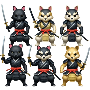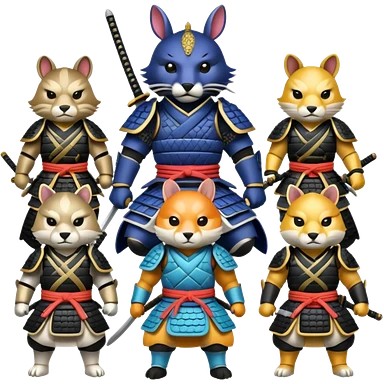 4 animaux samurai sur lit emoji | AI Emoji Generator