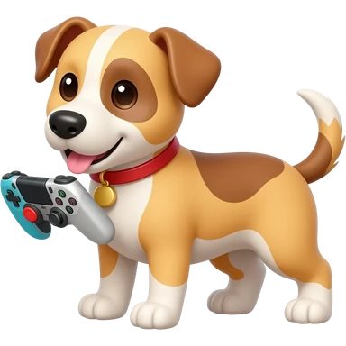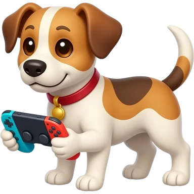 다리가 4개고 앞발로 조이콘게임하는 강아지 emoji