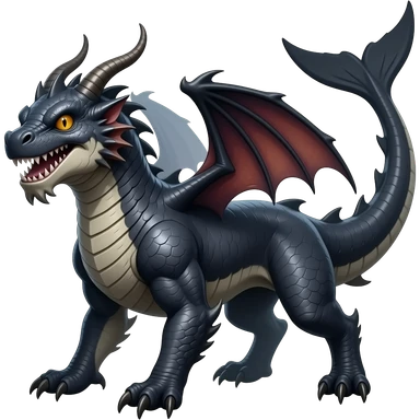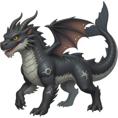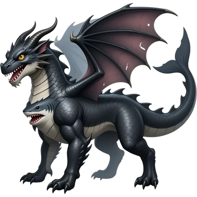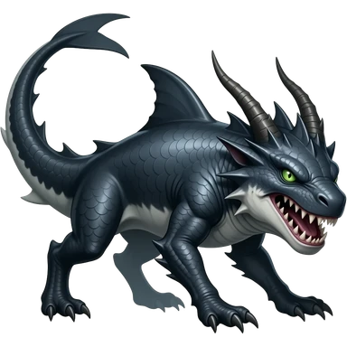 4-legged gothic ruff rough digitigrade dark badass edgy dragon-carvanha-sharpedo-Shark-Night-Fury-orca-hybrid-fusion-creature, with a long shark tail behind, full body emoji