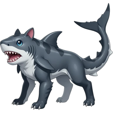 4-legged digitigrade landhai-carvanha-sharpedo-sergal-houndoom-Manectric-hybrid-fusion-creature, full body emoji