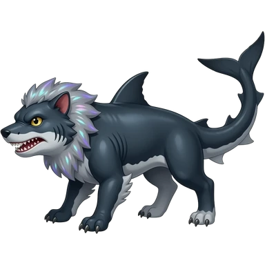 4-legged shimmering ruff rough digitigrade dark badass edgy landhai-Latias-Latios-carvanha-sharpedo-sergal-Manectric-Houndoom-Shark-Night-Fury-hybrid-fusion-creature, with a long shark tail behind, full body emoji