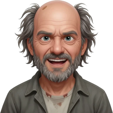 A crazy 40 year old man worn clothes, balding with a island patch in the middle emoji