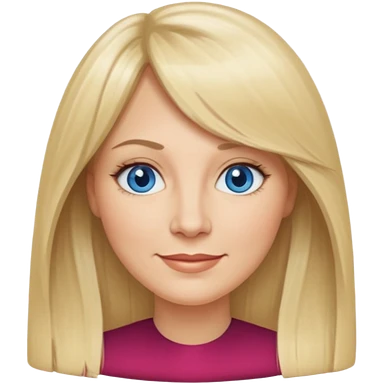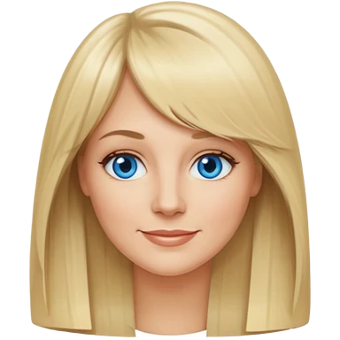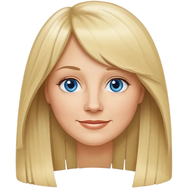 40 yr old white woman, curtain bangs, long straight blond hair, oval face, small smile, blue eyes emoji | AI Emoji Generator