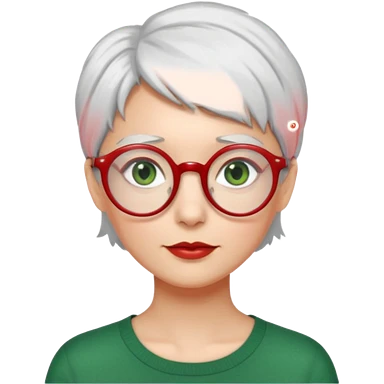visage femme a lunettes ronde rouge fine avec cheveux courts gris-blancs aux yeux verts emoji