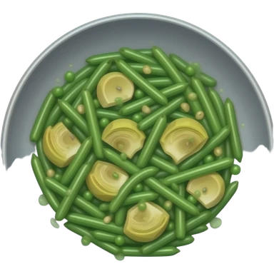 שעועית ירוקה, תחתיות ארטישוק ופול ירוק מוקפצים בשום ושמן זית ב זווית של 445 מעלות emoji | AI Emoji Generator