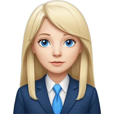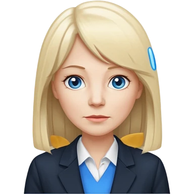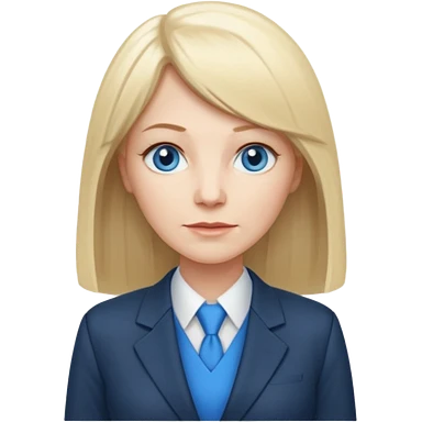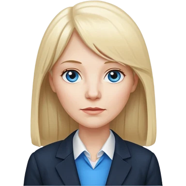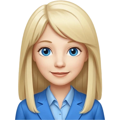 450 yr old white woman, pale skin, long straight blond hair parted in center, blue eyes, bangs, clothes for office emoji