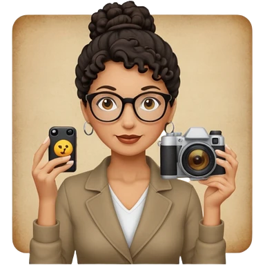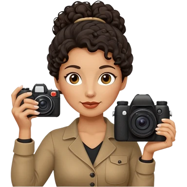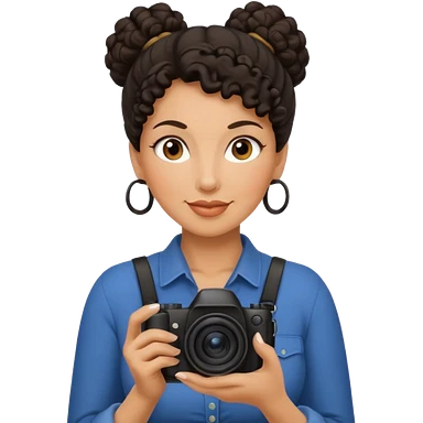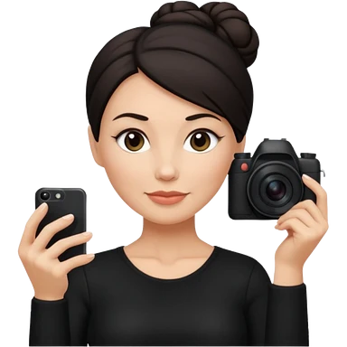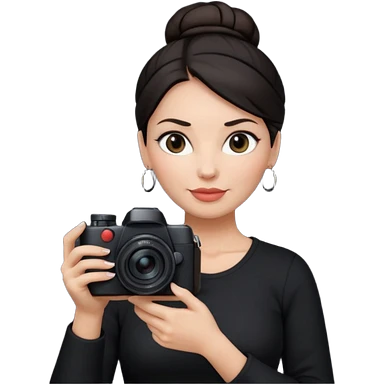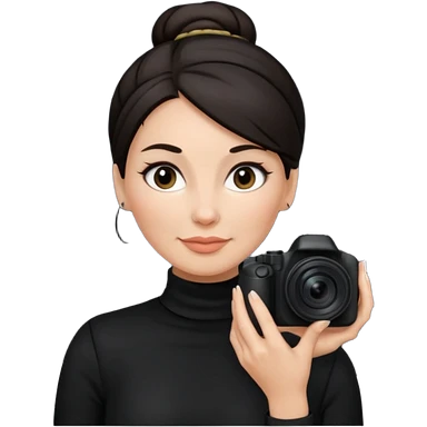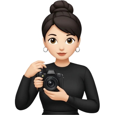 48 year old woman photographer with dark hair in a bun, wearing black clothes emoji | AI Emoji Generator