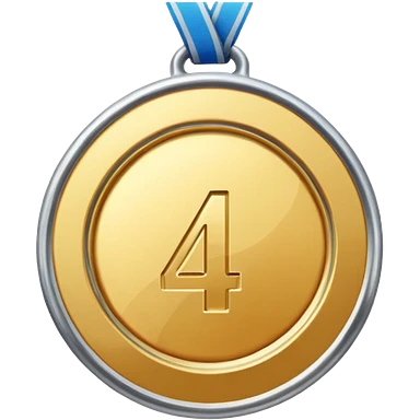 4th place medal made of pewter with a wide purple ribbon as a lanyard and a 4 written on it emoji