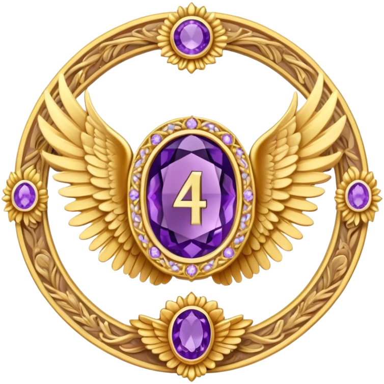 4th place award Number in frame decorated with golden angel wings and amethyst stone emoji | AI Emoji Generator