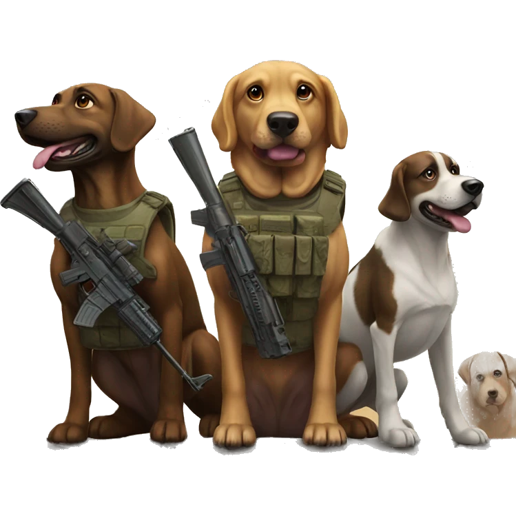 5 dogs eating while crying and crossing the road on top of a huge city filled with robots emoji