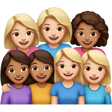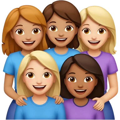 5 happy girls brunette and white races huggings emoji | AI Emoji Generator