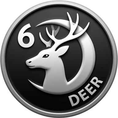 “Silver metallic coin medallion, black background, bold engraved style, number ‘6’ in top left, central design of a graceful deer with antlers framing a crescent moon, strong black outlines and shading, word ‘DEER’ in bottom right, high contrast, clean vector look” emoji