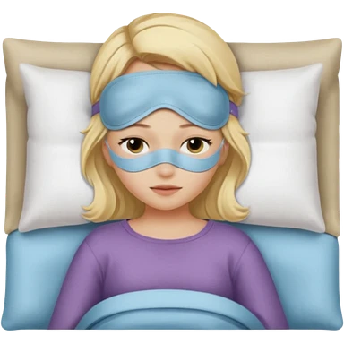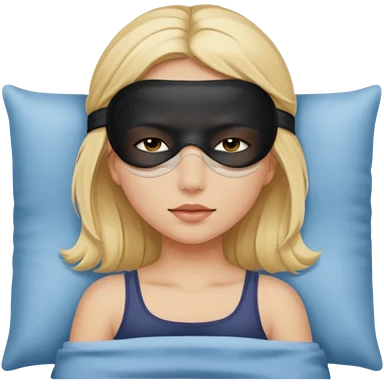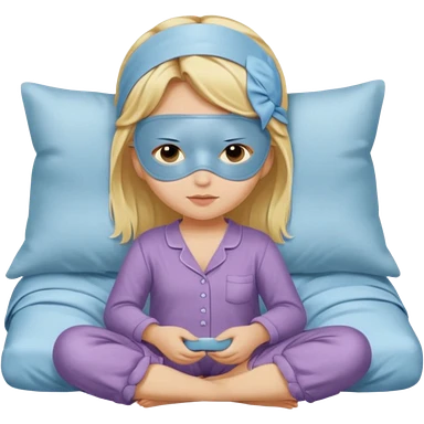 Девушка блондинка с маской для сна на лбу сидит без подушки emoji
