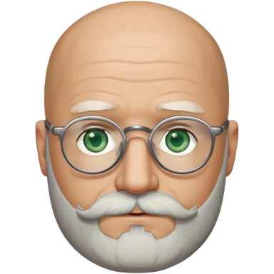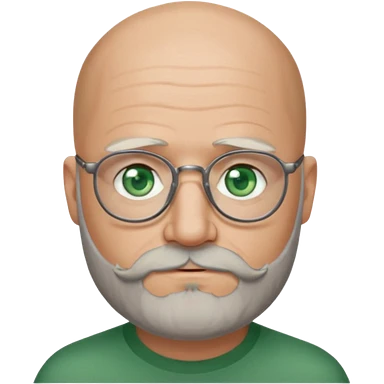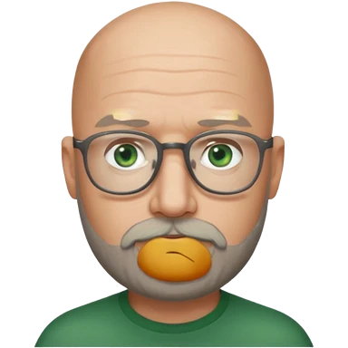 50 years old, green eyes, 2 days salt and pepper beard, bald, glasses emoji
