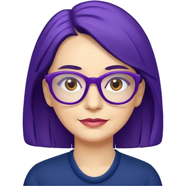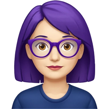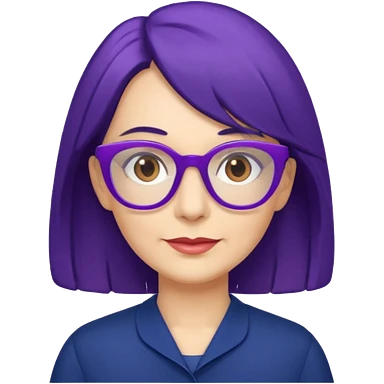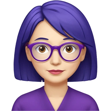 50-year-old woman with purple glasses, brown eyes, and navy blue shoulder-length hair emoji