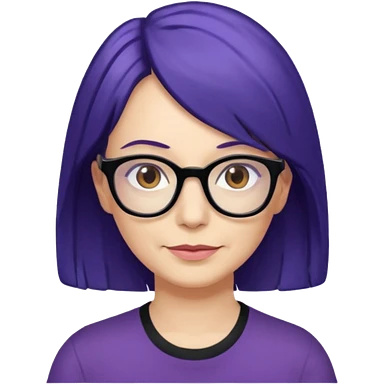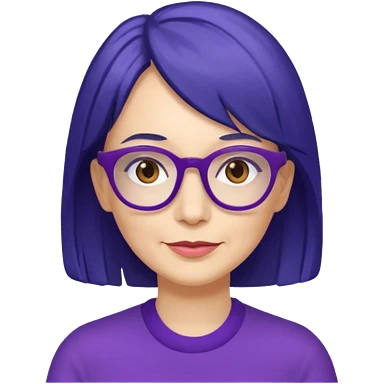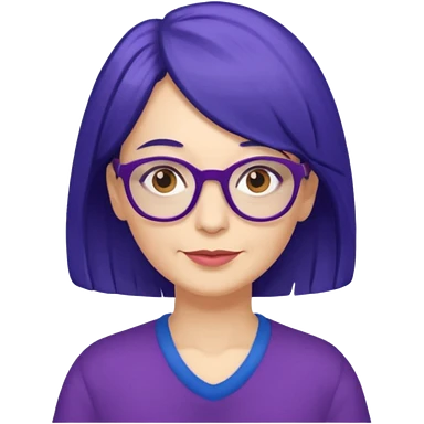 50-year-old woman with purple glasses, brown eyes, and indigo shoulder-length hair emoji