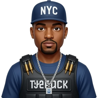 50 cent with his iconic Bullet proof vest and his NYc hat emoji
