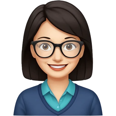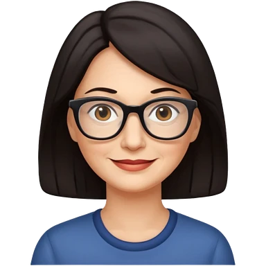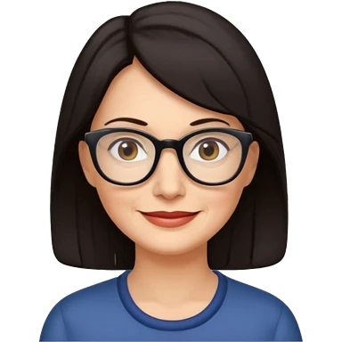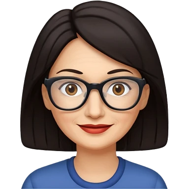 50 y.o. woman dark hair, subtle smile, glasses emoji