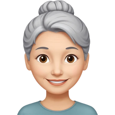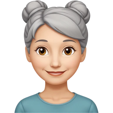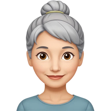 50 y.o. woman grey hair, subtle smile, hair in a bun emoji