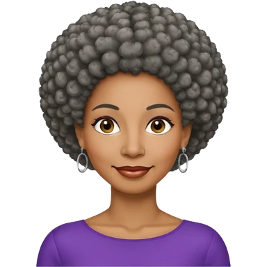 50 y.o. black woman, subtle smile, afro hair with grey strands emoji