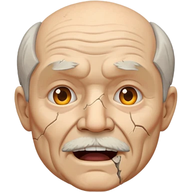 50 year old bearded and moustached white male wearing glasses with an open mouth. His mouth has been cast into a square frame made of concrete connected to a drain pipe. He is proud and thinks his right, while being slightly angry because the joke is on him.emoji