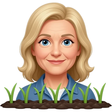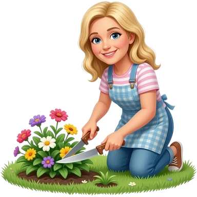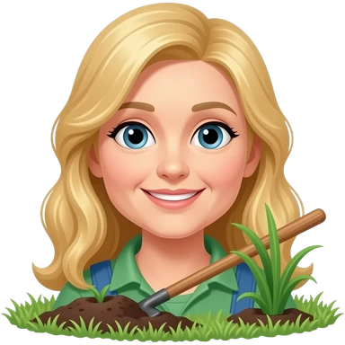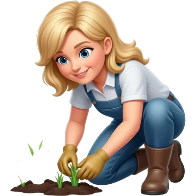 50 year old medium blonde hair woman working in flower bed emoji