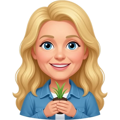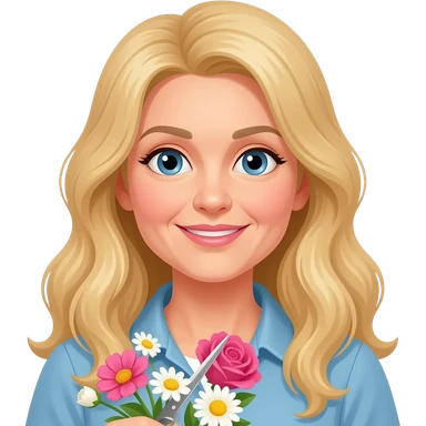 50 year old long blonde hair cutting flowers emoji