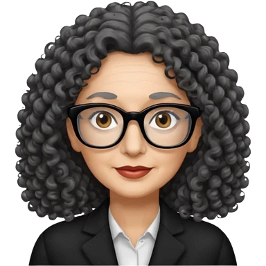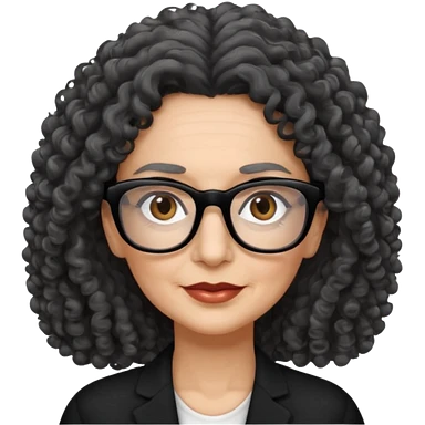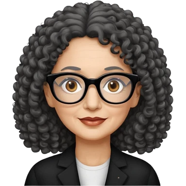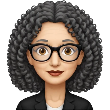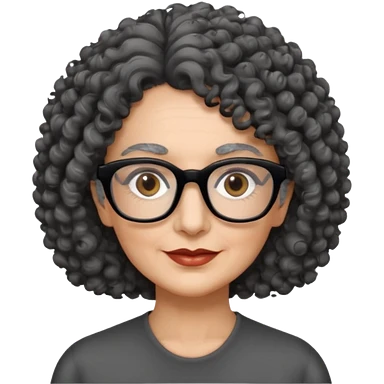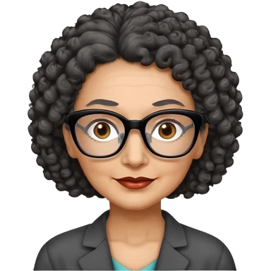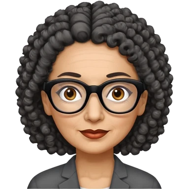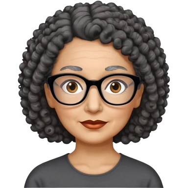 50 years old woman, curly hair, brown eyes and rectangle glasses emoji